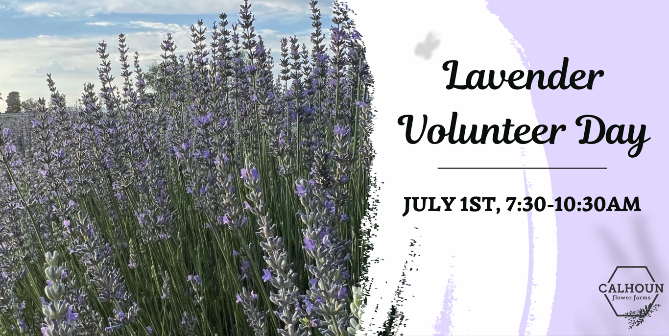 Calhoun Flower Farms is in season and we're inviting you to volunteer in the Lavender acres. Come join us at the farm on July 1st (7:30am-10:30am) to recharge and get your hands dirty while surrounded by this amazing plant!